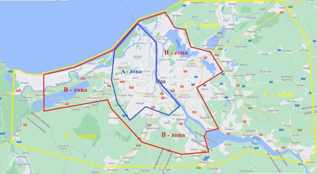 Rīga, centrs, Jūrmala līdz Mellužiem, Centrs, Rāmava, Baloži, Katlakalns, Ķekava, Stūnīši, Tīraine.
